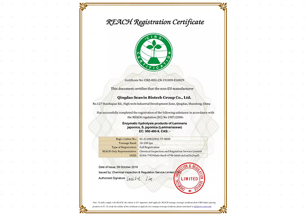 Reach海帶提取物全球領(lǐng)頭注冊(cè)人