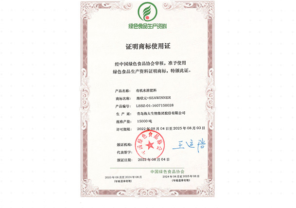 證明商標(biāo)使用證(綠色食品生產(chǎn)資料)